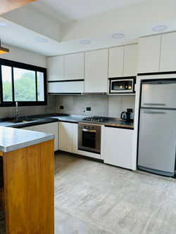 Cocina integrada al estar comedor con Tv Smart y aire acondicionado